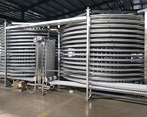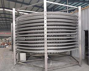 設(shè)備只有一個(gè)轉(zhuǎn)鼓,輸送帶在轉(zhuǎn)鼓上做螺旋上升或者螺旋下降運(yùn)動(dòng)。